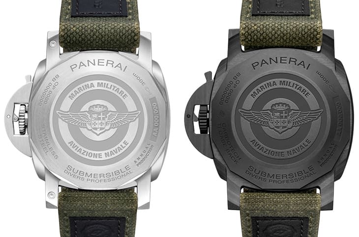 ▲两款表表背都鐫刻义大利海军航空队双翼徽章,象徵沛纳海与军方合作的深厚历史与敬意。