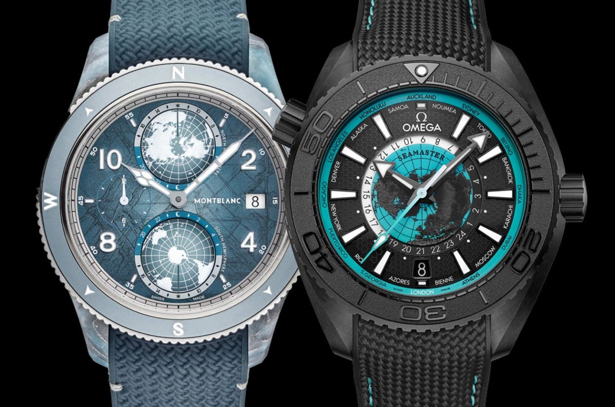 拥有世界时区功能的手表不仅满足全球旅行者对跨时区时间掌握的实用需求,更象徵着穿越国界、探索未知的生活态度。当这类复杂功能与前沿材质相结合时,手表的定义早已超越时间显示工具本身,摇身一变成为科技与美学交匯的佩戴艺术,因此採用创新材质打造的世界时区表款,正成为高端手表市场中令人关注的一股新势力。本文将焦点放在两款兼具「世界时区」与「特殊材质」特质的代表作:来自万宝龙的1858系列,以及欧米茄的海马Planet Ocean系列,一款来自高山之巔,一款潜入深海之境,两者分别以零氧技术与黑色陶瓷诠释探险者的风格,也共同展现了现代制表对性能、设计与故事性的深入追求。