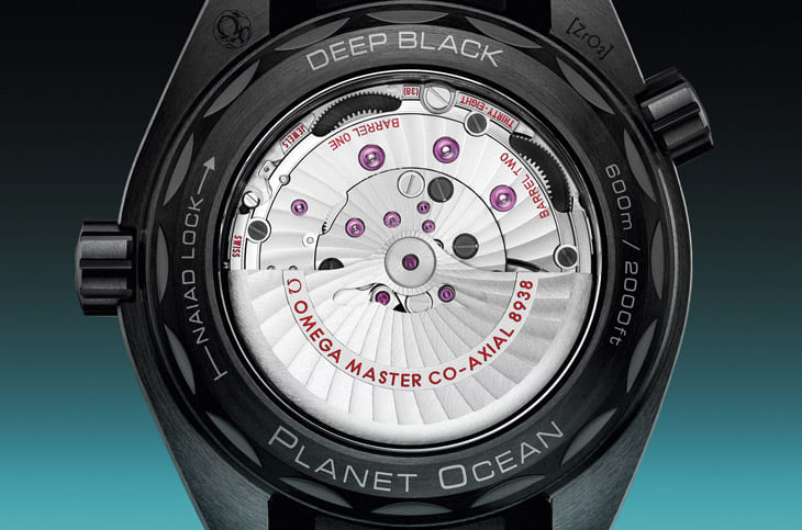 除了外型吸睛,这款Planet Ocean最大卖点之一,就是它搭载的欧米茄8938机芯,这枚自动上链同轴擒纵机芯,不仅支援世界时区功能,还通过METAS大师天文台认证,意味着它在准确度与抗磁性上都有顶尖表现,可抗高达15,000高斯磁场、每日误差控制在+5秒以内。8938机芯内部配备双发条盒,让它拥有长达60小时动力储存,周末不戴也不怕停走,从表背蓝宝石透明底盖望去,可以看到精致的镀銠夹板与独特的阿拉伯式日内瓦波纹,黑色螺丝与摆轮点缀其中,机芯的每个零件看起来都像经过设计师的精心摆拍。这枚机芯驱动的除了标准的时、分、秒显示外,还包括24时区显示、旋转城市环与日期视窗,再加上这款表仍保有600米防水性能,等于结合了潜水表、世界时表与高抗磁功能于一身,是机芯实力与功能性的高完成度代表。