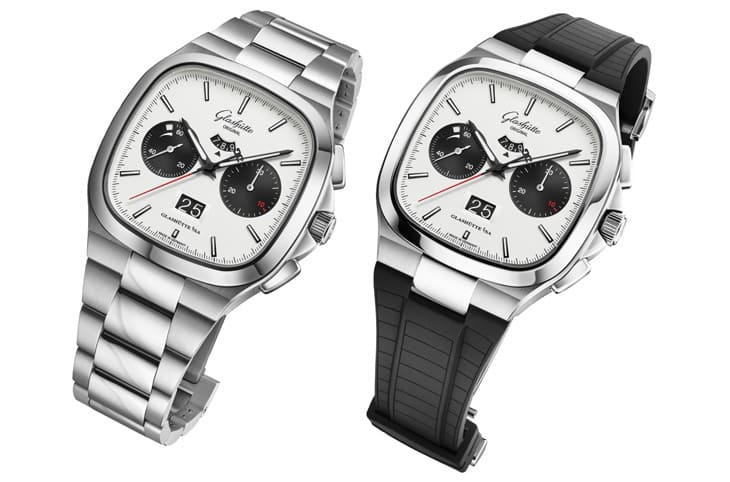配件上,GLASHÜTTE ORIGINAL一次给足,原厂不锈钢链链带有微调系统,佩戴时可以依手腕状况即时调整长度,这项设计早在20年前品牌就已开创,算是走在时代的前端;随表还附上一条黑色橡胶表带,锥形线条与表壳造型呼应,纹理细节处理得很到位,换上它能让整体风格更偏运动休閒。