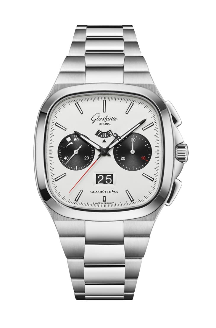 GLASHÜTTE ORIGINAL再一次展现了驾驭经典设计与精密机芯的能力,他们近期推出全新Seventies ‘X’计时码表。这款作品限量100只,专为美国、加拿大与加勒比海市场设计,同时也是Seventies系列十周年的重磅之作,其中最吸睛的细节之一,藏在面盘3点钟方向的30分钟计时盘中:红色的数字"10",低调却意味深长,纪念这段十年的时光。