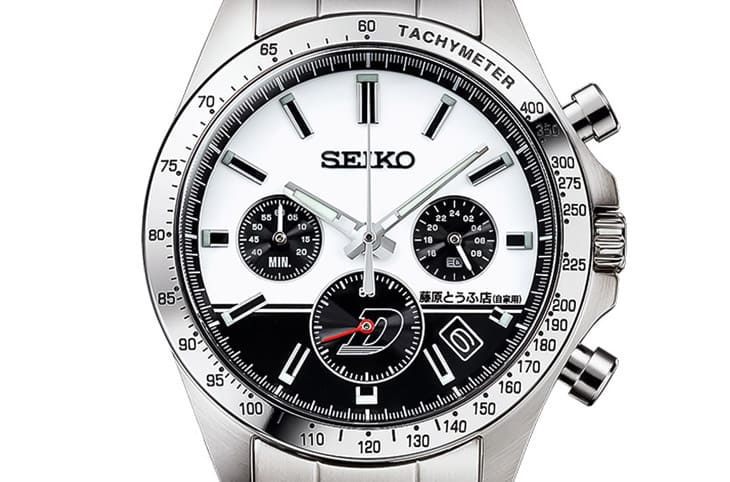 细节上,SEIKO下了不少功夫,9点钟位置的分钟计时盘模仿汽车仪表板的测距仪,并标示"MIN"作为时间刻度;3点钟的24小时盘则融入AE86转速表上的车头灯图示,这种对原作迷才懂的暗号式设计,充满乐趣。6点钟位置的小秒盘印有风格化的"D"字标志,既象徵漂移(Drift),也代表梦想(Dream),为整只表注入故事灵魂。至于指针与时标均涂覆Lumibrite夜光涂料,即使在昏暗环境中也能清晰读时,呼应动画中夜间山路对决的场景感。
