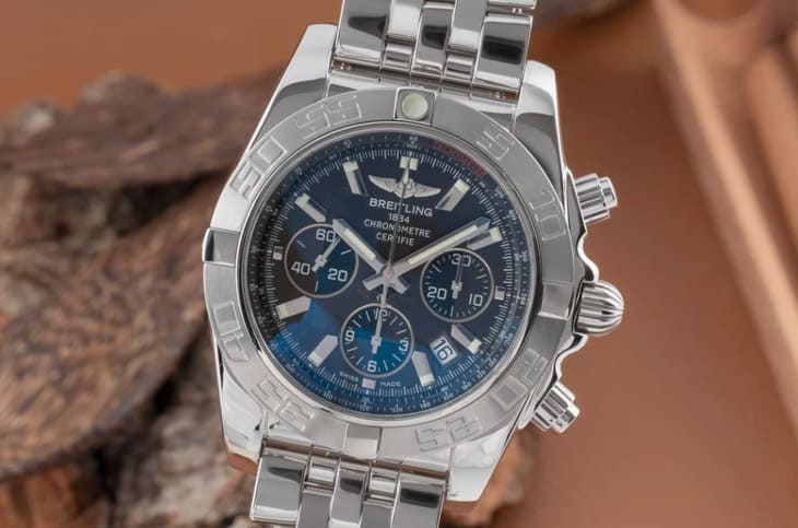 提到百年灵,很多人第一时间会想到Navitimer,但其实Chronomat的历史更悠久,早在1940年代就登场了。Chronomat 44虽然以飞行员表闻名,却同时具备500米的防水深度,对一款计时码表来说相当惊人。44mm的不锈钢表壳在手腕上存在感十足,表圈上3、6、9、12点钟位置的凸起设计,不论戴着手套还是素手操作都很顺手,旋入式计时按把确保了潜水时的安全性,内部搭载百年灵自制B01机芯,拥有约70小时动力储存与精准稳定的计时功能,表带选择丰富,从全拋光飞行员钢带到橡胶与皮革版本一应俱全。