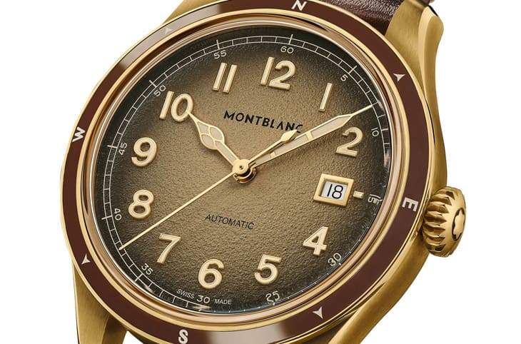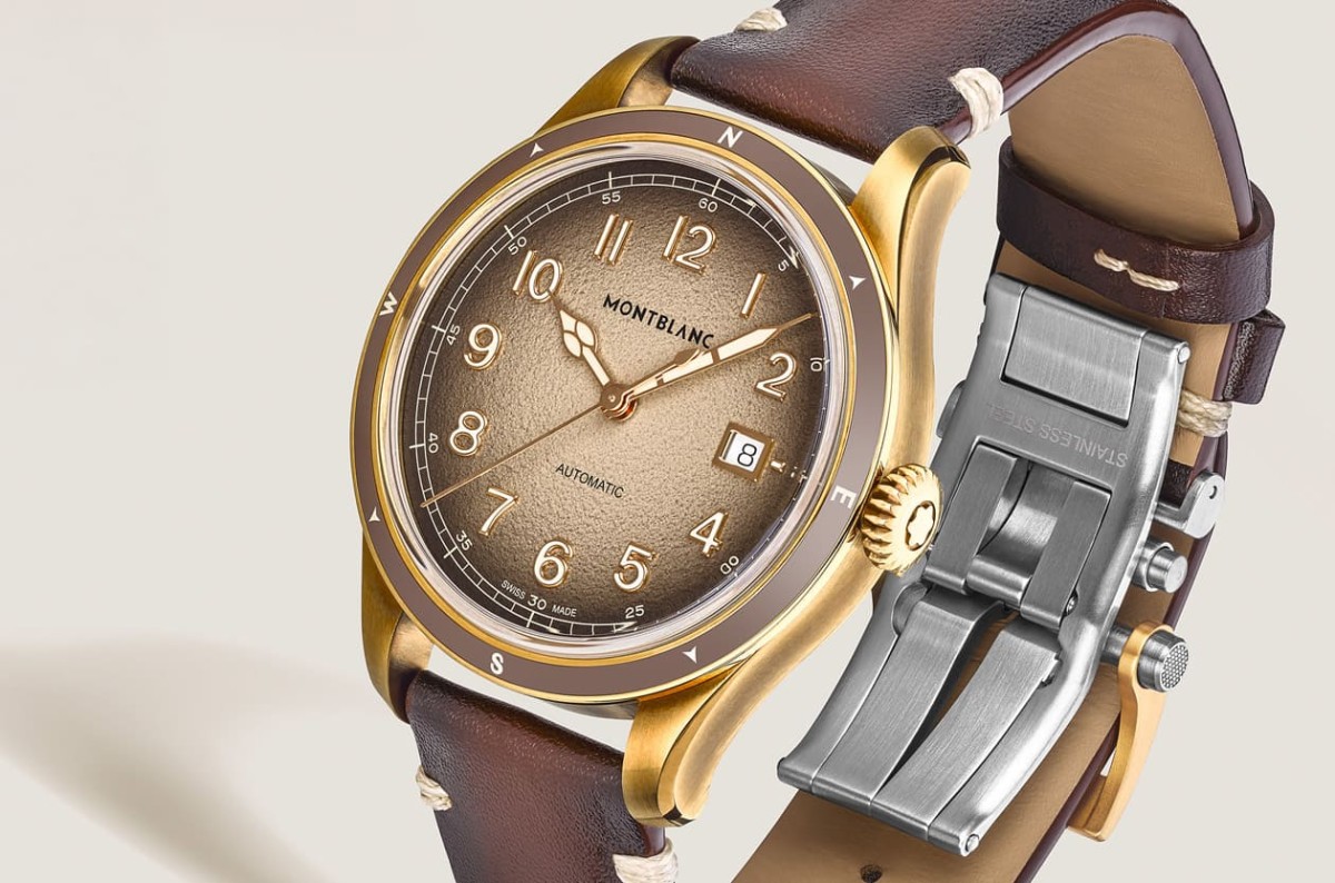 表壳直径41mm,线条流畅的弧形表耳让佩戴更服贴,材质选用铜铝合金,这可不是一般青铜,它的韧性高出1.5倍,而且耐腐蚀、不易生锈,随时间还会自然生成包浆,让每只表都有专属的岁月痕跡。固定式表圈镶有拋光棕色陶瓷嵌件,刻上米色夜光罗盘刻度,实用同时带点野外探险感,表冠顶部饰有立体万宝龙标志,细节处的质感相当到位。表带部分,选用与面盘色调相呼应的棕色渐变小牛皮,米色缝线增添手工味,配备可微调的不锈钢双摺扣,并有快拆系统,可轻松换成橡胶或尼龙表带,从西装到户外装备都能切换自如。
