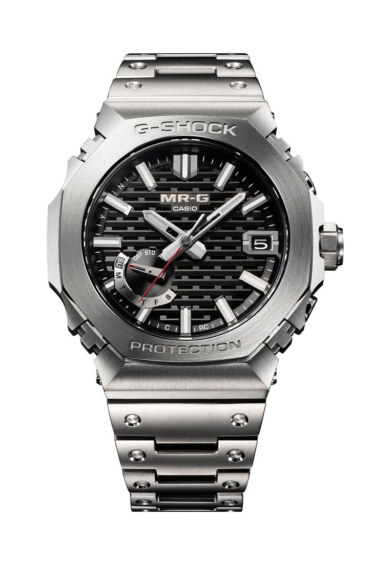 它搭载多重防护结构(Multi-Guard Structure)、防护构造(Clad Guard Structure),确保金属表壳在任何情境下都能承受冲击,同时具备Tough Solar太阳能驱动、Multiband 6多频段电波校时,以及蓝牙连结智慧型手机的功能,坚固与智慧并行,一举成就了MR-G的独特地位。目前,MR-G系列产品线相当多元,其中包含了以初代G-SHOCK "Origin"系列以及以八角形表圈为特色的"2100"等表款为基础,并以MR-G的最高品质标准重新打造的型号,以下将重点介绍几个代表性的系列。