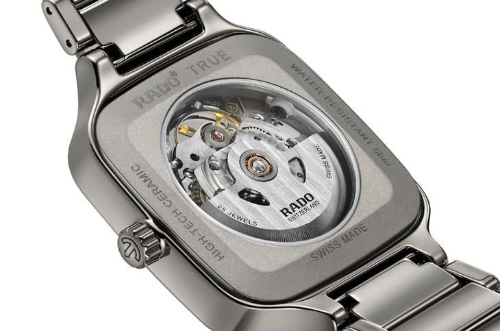 两款True Square同样搭载R734自动机芯,提供80小时动能,并具备抗磁游丝,确保日常佩戴的稳定品质与实用性,在透明背盖下能够让佩戴者随时欣赏机芯的精妙运作,为这份情感象徵增添诗意。
