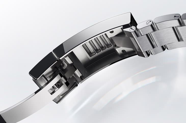 1996年推出的Easylink易调链节,算是劳力士近代第一个专为舒适度而设计的发明,它被巧妙隐藏在Oysterclasp表扣内,概要而言这个装置就是一个隐藏式的铰接钢段,它能迅速延长或缩短约五mm。别小看这五mm,它正好足以应对手腕因气温或活动变化带来的微幅涨缩,更重要的是,这套系统完全无需工具,轻轻一翻即可完成调整。这项小小的创新,成为许多佩戴者口中「戴上就忘了存在」的祕密,Easylink也很快普及到Datejust与Explorer等日常款式,并长期成为劳力士手表的标配,可以说,劳力士自此定下了一个方向:舒适,不只来自材质,也来自即时可控的调整。