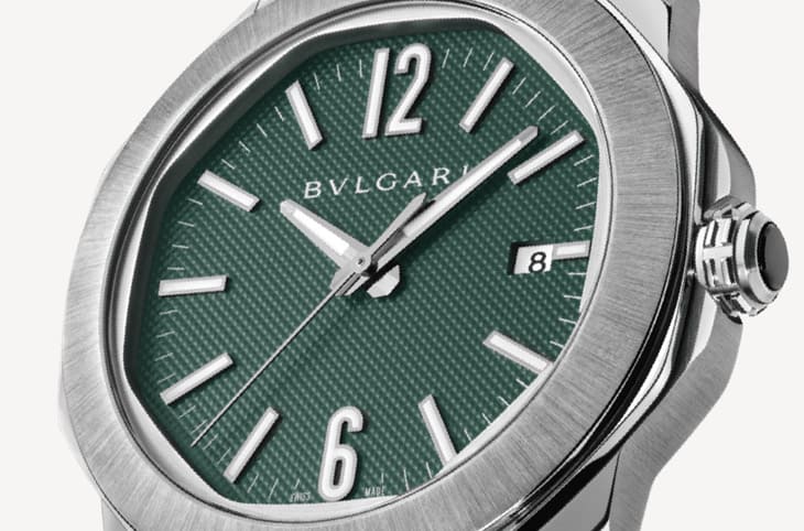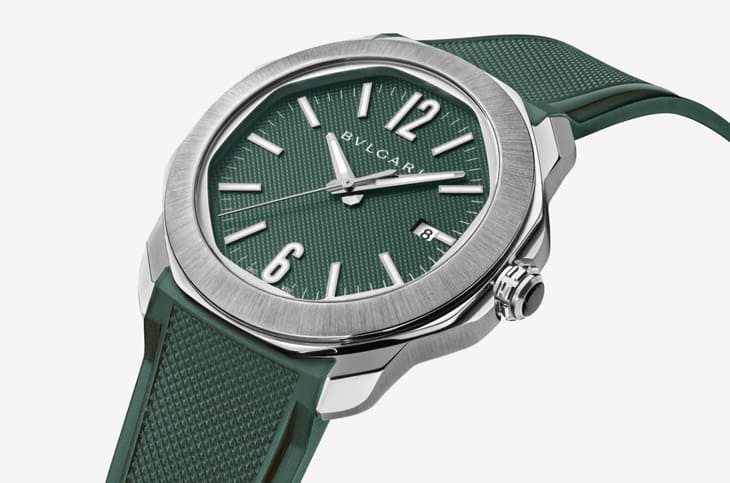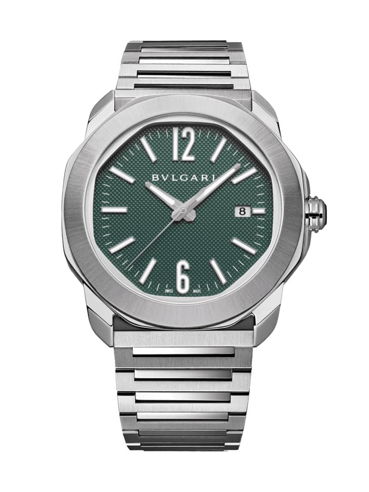2023年,Octo Roma经历了全面改款,带来更圆润、更均衡的造型,2025年,系列再添一抹亮眼的新色,推出绿色面盘的Octo Roma Automatic(型号是104091),悄悄加入宝格丽手表常规系列。这次更新,为整体设计注入新鲜气息,同时保持了它一贯的沉稳格调。