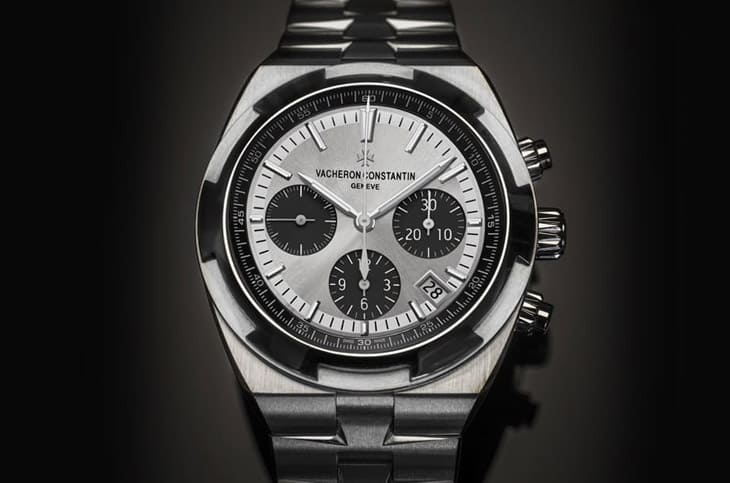 ▲江诗丹顿Overseas「熊猫面」採不锈钢表壳,银色旭日纹搭配黑色计时盘呈现鲜明对比,手表具马耳他十字元素与快拆表带系统,搭载5200自动机芯,呈现高级制表迷人工艺。