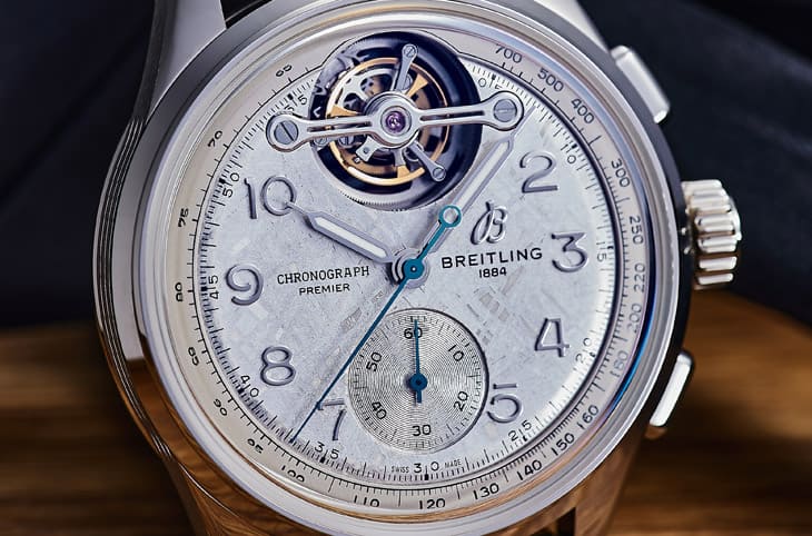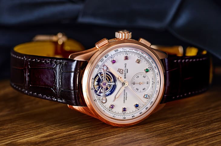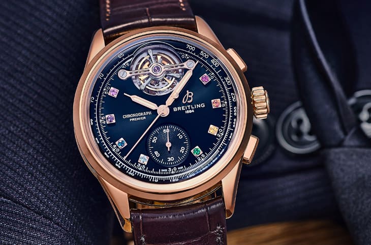 ▲Premier系列承袭1943年Willy Breitling原创精神,将精准工艺视为风格延伸,这套陀飞轮计时码表巧妙融合历史致敬与现代诠释。