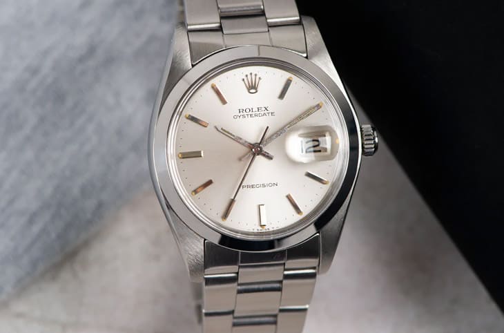 想找一款入门级劳力士,Oysterdate Precision几乎是绕不开的名字。它从1957~1989年间长达三十多年的生产周期,让它在市场上供应稳定、价格亲民。型号6694通常很受收藏家喜爱,因为手动上链设计不仅降低了机芯复杂度,也让佩戴者能透过每日上链与手表建立情感连结。许多老款Oysterdate在岁月中养成了独特的面盘铜绿,让每一只都带有个性化的痕跡。目前在二级市场,这系列手表的起价大约2,500美金(约合台币7万7),堪称「复古劳力士的黄金门票」。