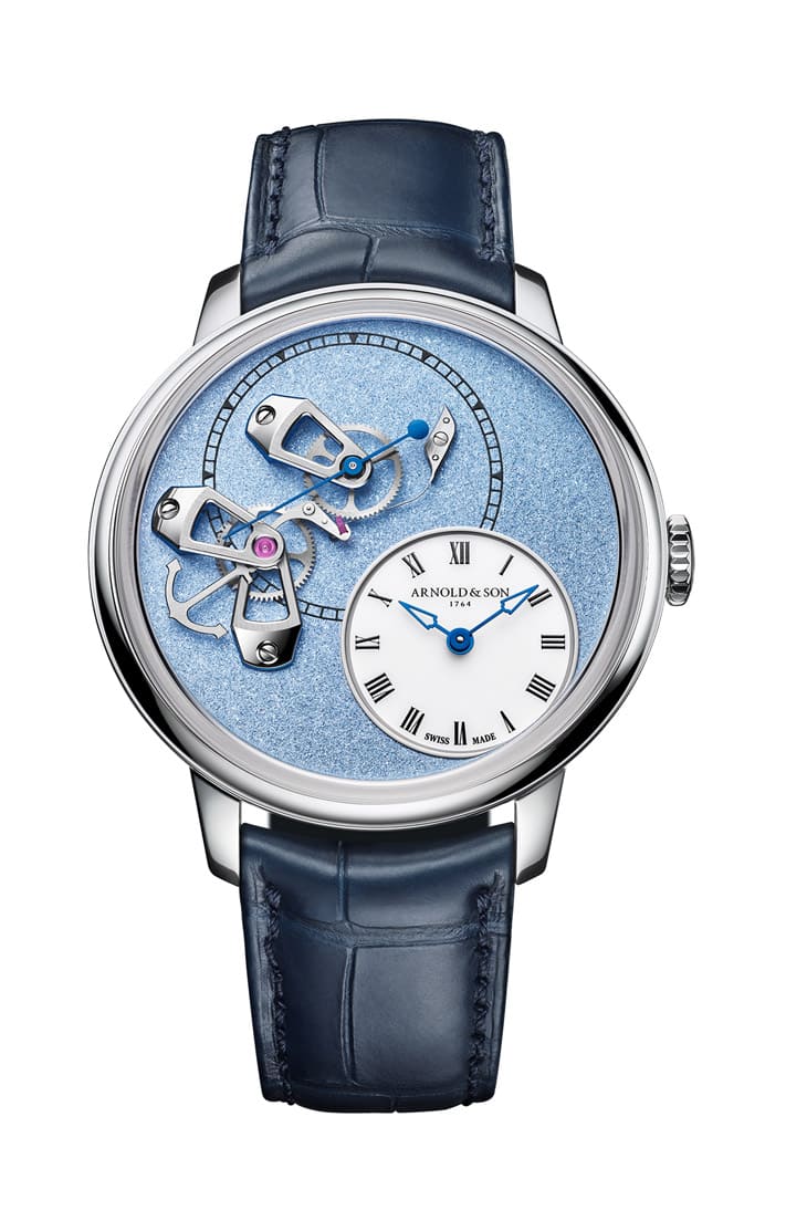 ARNOLD & SON这回端出的DSTB 42新版本,精准地抓住了「传统」和「新意」的平衡,这个系列名称中的DSTB,全名是"Dial Side True Beat",意即「面盘侧跳秒」,这种将跳秒机制直接展示于面盘的设计,最早可追溯到品牌创办人John Arnold在18世纪为皇家海军制作的航海天文钟。当年的天文钟,每秒一次的稳定跳动,是水手们在茫茫大海上最可靠的导航节奏。