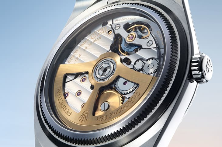 表背透视下的主角,是劳力士全新研发的7135自动机芯,它在7140机芯基础上进化而来,特点是高震频运转与创新的擒纵系统。7135机芯以5Hz的高频率运作,精度可细化到1/10秒,这在劳力士历史上极为少见。高震频通常意味耗能增加,但7135机芯透过全新结构与高效能发条盒,仍能提供约66小时动力,日常佩戴完全足够。最具话题的是名为 「动态脉冲擒纵」(Dynapulse escapement)的创新机制,它捨弃传统槓桿滑动结构,改以旋转式分配能量,摩擦大幅降低,效率提升约三成。由硅材制成的组件完全不受磁场影响,稳定性自然也更高,这套系统获得多项专利,可说是劳力士对机芯核心架构的一次彻底革新。此外,摆轮轴採用陶瓷材质,这裡也结合飞秒雷射加工,耐磨与抗震性优异,配合强化版Syloxi硅游丝,以及改良的Paraflex缓震装置,让整体抗冲击能力显着提升。机芯的美学细节同样不容忽视,外部饰以日内瓦波纹,自动盘则以黄金打造并採镂空设计,透过蓝宝石底盖观赏时,质感完全不输任何高级制表品牌,再加上顶级天文台认证(每日误差±2秒),Land-Dweller不只是外貌新颖,它在机芯层面也达到了新高度。