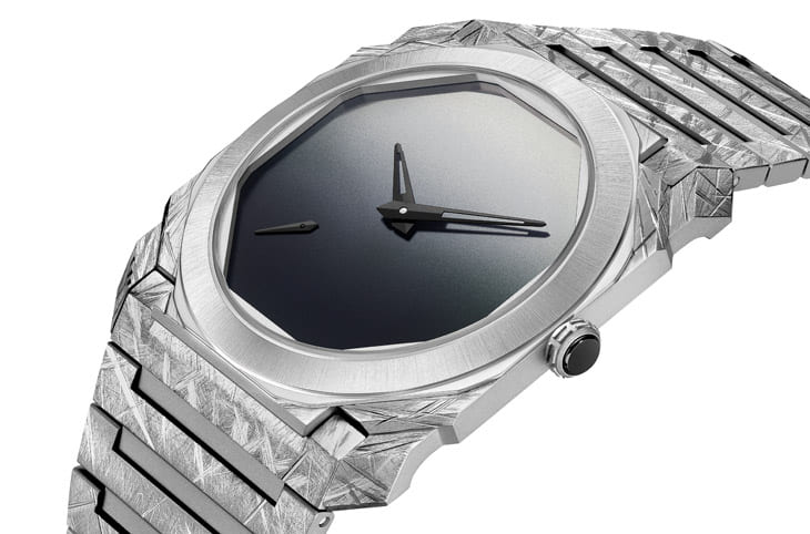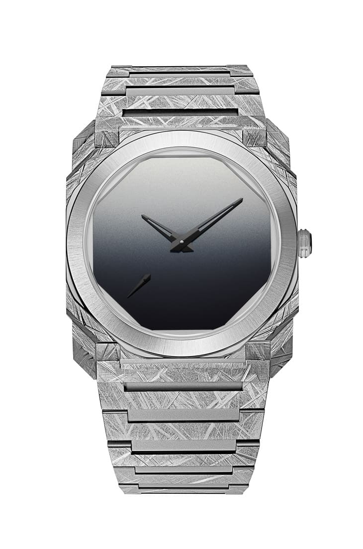 ▲表款由李禹焕与宝格丽设计总监合作,灵感来自岩石与镜面张力,手工处理钛金属表壳与链带,全球限量150只,每只皆具独特纹理。