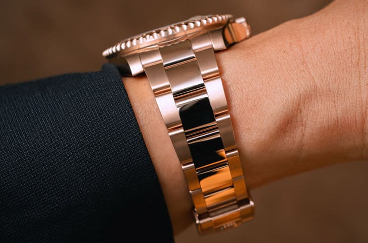 ▲126715CHNR以18K永恒玫瑰金锻造表壳,奢华兼具实用,三扣锁表冠搭配护肩设计,确保100米防水,结构坚固且具高防护性。Source:aBlogtoWatch