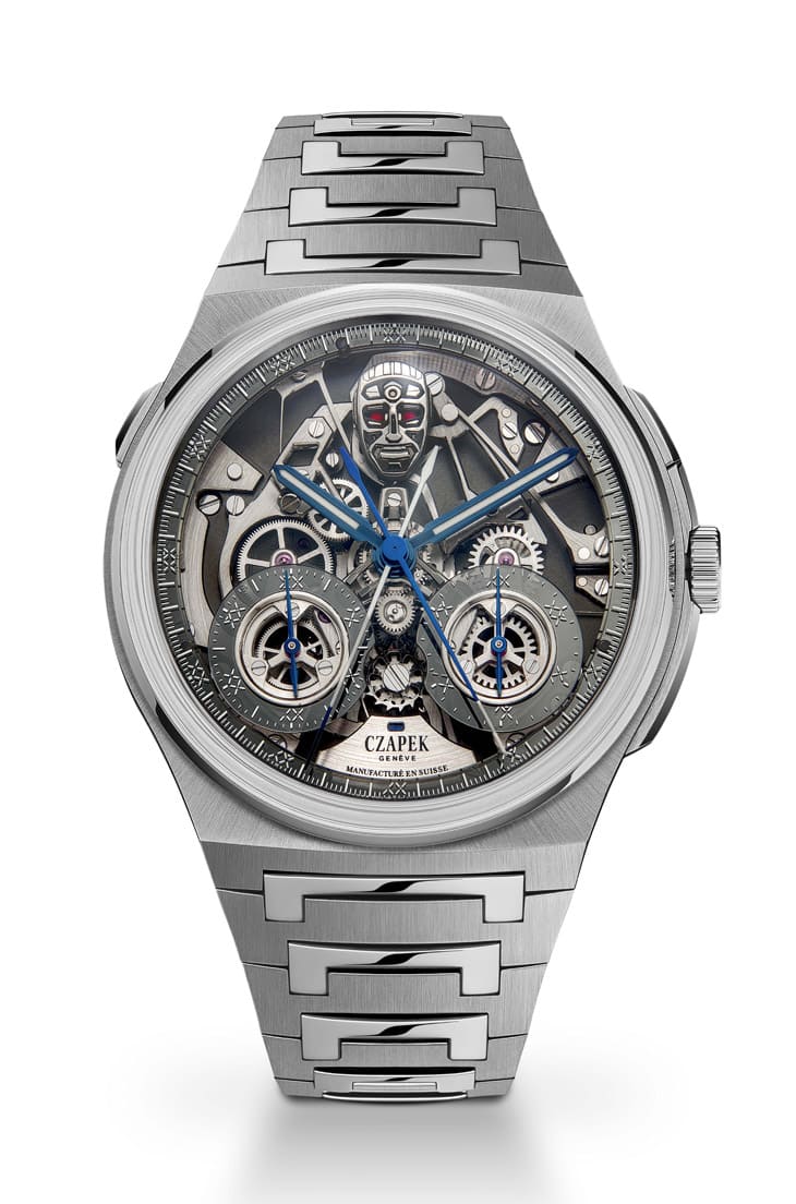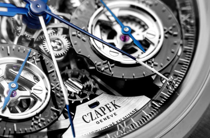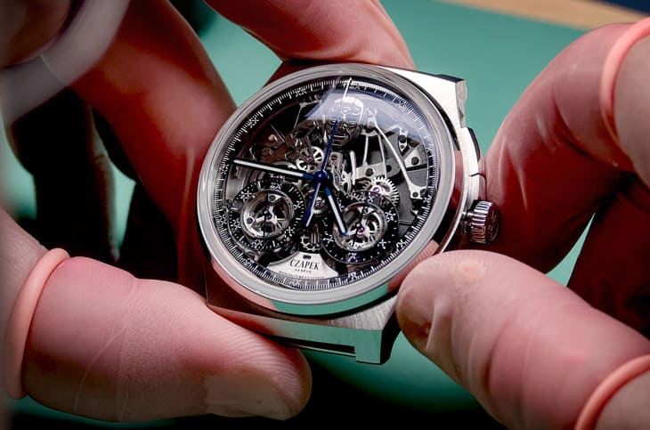 ▲此表为CZAPEK首度将追针计时装置翻至面盘,让佩戴者直接欣赏精密运作,将技术与美学化为正面焦点。
