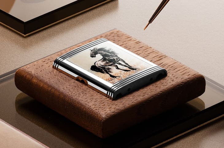 除了表背的微绘,每款新作的正面面盘亦与主题形成呼应。奔马图款展示一匹疾驰骏马,其面盘选用「松柏绿」大明火珐琅,覆盖在放射状扭索饰纹之上,光影交错宛如草原上奔驰的动态;双骏图款描绘一黑一白两匹马的亲密姿态,搭配「远山蓝」珐琅和大麦种子纹理,营造出宛如水墨山水的静謐氛围;立马图款则展现一匹骏马蓄势待发的姿态,面盘以「朝霞橘」珐琅覆盖人字纹雕饰,彷彿捕捉晨曦初现的温暖光芒。三款手表的设计皆以简洁双针布局与太子妃式指针呈现,没有多餘复杂显示,让观者将注意力专注于珐琅色泽与扭索纹理的细节。