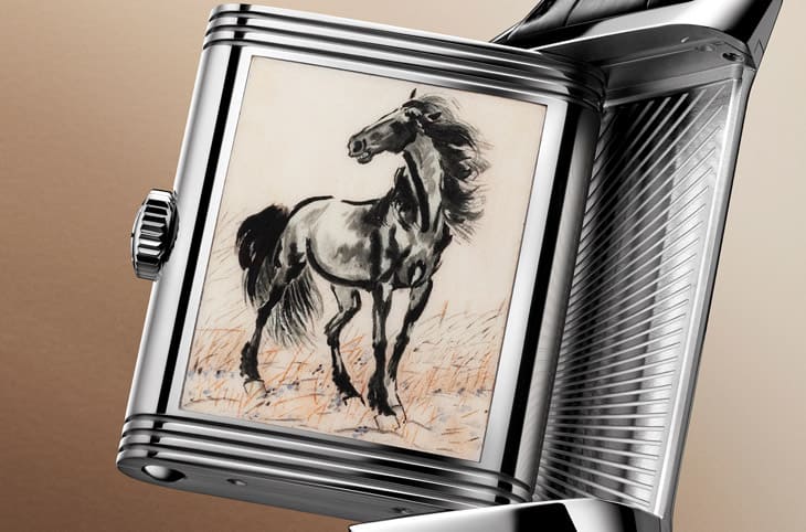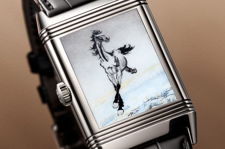Reverso系列诞生于1931年,最初是为保护手表免于在马球比赛中因为遭遇撞击而损毁所发想设计,其矩形翻转表壳不仅功能独特,也凭藉着纯粹的装饰艺术线条成为经典。九十多年来,这个可翻转的金属表背逐渐演变为积家工艺大师们展现创意的画布,无论是珐琅微绘、雕刻,还是宝石镶嵌,都曾在其方寸之间留下痕跡,这次选择骏马作为主题,不仅呼应Reverso与马术运动的历史渊源,更将中国文化中象徵力量、勇气与优雅的意象融入设计,使这件作品兼具东西方的双重内涵。