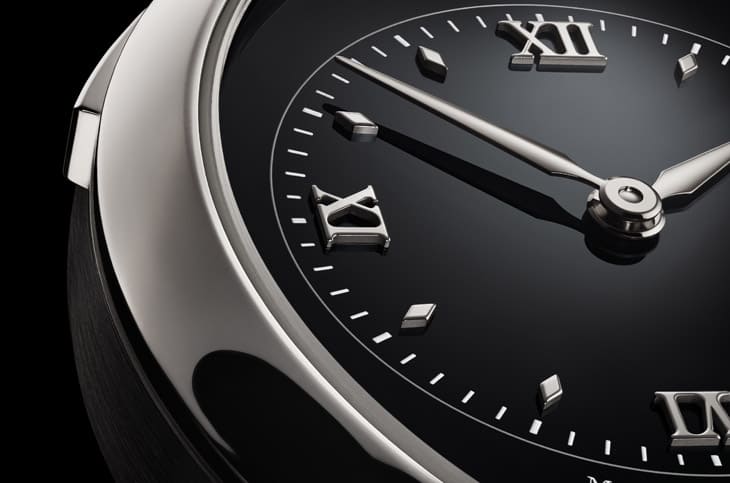 除了金属与珐琅,朗格还大胆将天然石材与艺术玻璃带入制表领域,例如縞玛瑙(Onyx)便是其中的代表,黑色縞玛瑙面盘经过细致切割与拋光,呈现出宛如镜面般的深邃光泽,这种材质较少出现在高级制表领域,因为切割难度高,一旦有瑕疵就难以修复,但正因如此,当它与朗格经典设计结合,便营造出低调却极具张力的氛围。Lange 1三十周年纪念版的铂金限量款,就是首度搭载黑色縞玛瑙面盘,展现了朗格将传统与创新相互融合的巧思。