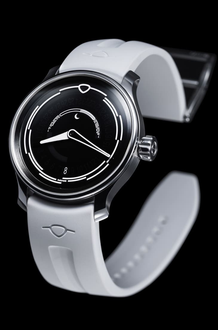 ▲Lunatic作为37.05月相三部曲的收官之作,不仅代表系列的终结,也凝聚MING极简设计精髓,展现品牌对月相表的最终诠释与美学理念。