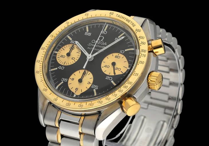 1990年代是双色金的天下,手表品牌纷纷推出结合不锈钢与金的设计,象徵时尚与成功,欧米茄当然也不例外,Speedmaster Reduced 175.00.03就是系列裡最鲜明的时代代表。这款双色版本将不锈钢表壳搭配金质表圈、表冠与计时按把,并配上双色链带。面盘上金色的指针与时标,更是将Reduced的形象从入门运动表提升到能应付正装场合的地位,虽然机芯依然是基于ETA的模组化计时机构,但它的价值在于设计风格。如今随着双色表再度流行,175.00.03不再被视为过渡产品,而是忠实记录了九〇年代奢华潮流的历史片段。