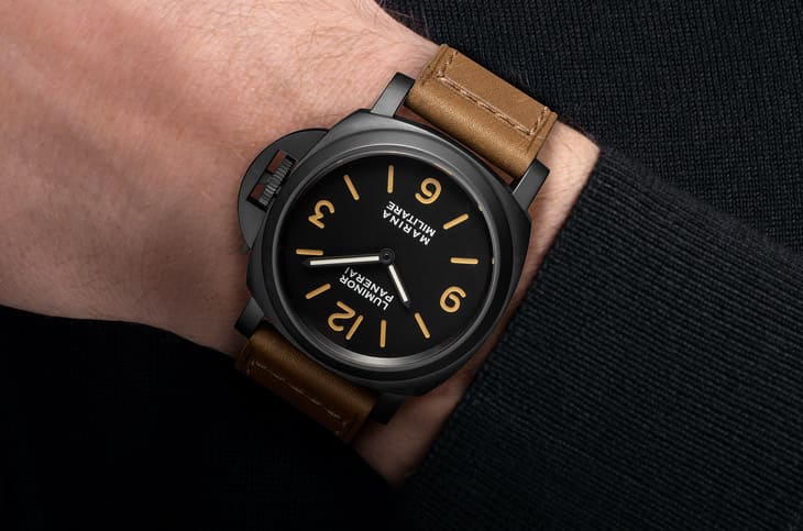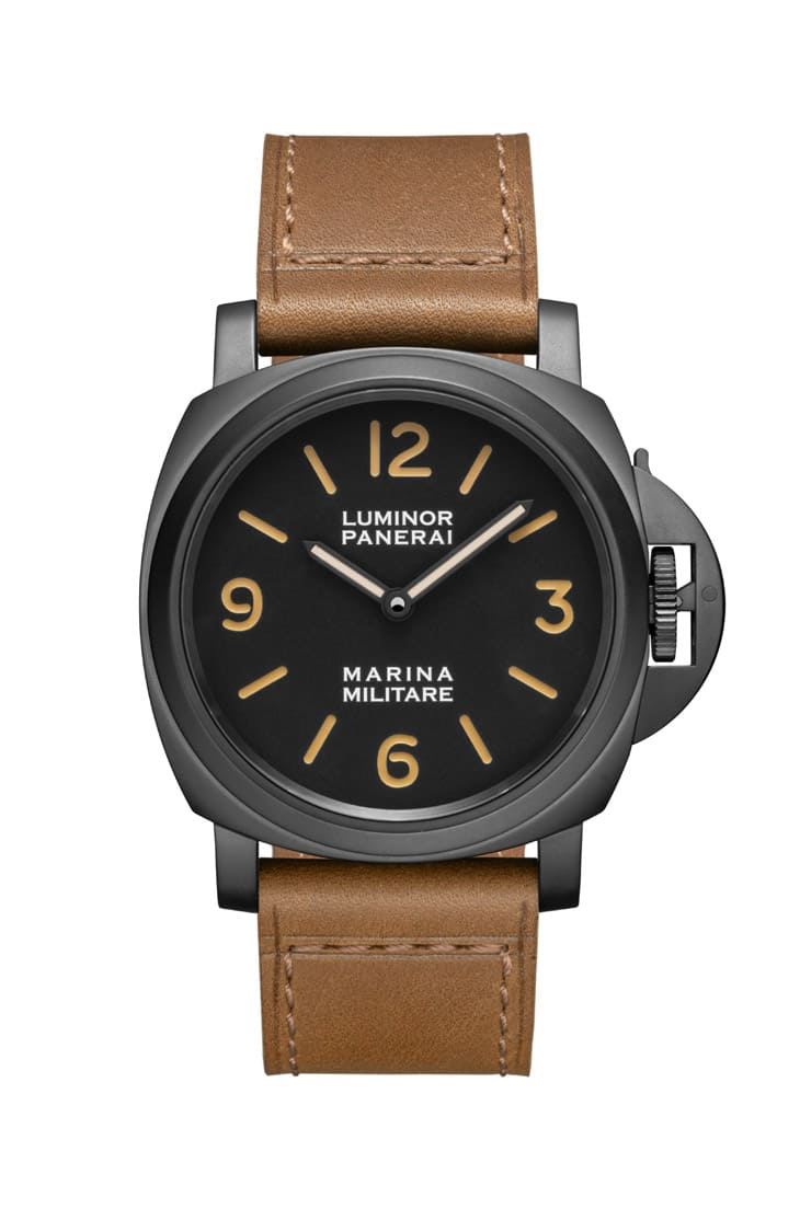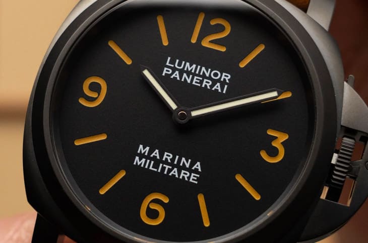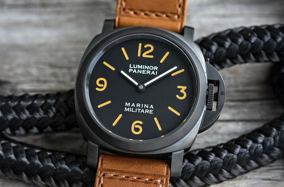 「非匹配」(non-matching)面盘是沛纳海会让收藏家眼睛一亮的其中一种设计,这个视觉特色,来自早期氚夜光涂料与清漆的化学反应,结果造成时标与指针的夜光顏色不一致:时标偏橙棕,而指针仍是偏绿或浅色,因为这只是早期少量表款的「意外产物」,所以成了极少数才有的珍稀版本。PAM05218就是要把这段历史「不完美的美」忠实重现,它採用单层黑色雾面表盘,不是后来招牌的三明治结构,而是精准复刻当年的设计,时标填充焦糖色Super-LumiNova®夜光涂层,搭配色调更浅的指针,营造出那种非匹配的独特反差,6点钟方向的"Marina Militare"字样,更进一步点出它和义大利海军的历史羈绊。对老玩家来说,这种细节就是灵魂,因为它不只是一只复刻表,而是把一段已经消失的「错误之美」带回当代,这种带点故事感的特徵,往往比任何现代工艺更能打动收藏家的心。