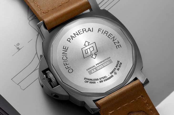 PAM05218的外表看似高度复古,但内部却装上了沛纳海现代自制的P.6000机芯,这枚手上链机芯提供72小时动力,比起当年原型搭载的ETA Unitas 6497(约46小时),耐力明显更长,对日常佩戴而言实用性大大提升。P.6000的结构设计也有升级,它使用横跨式摆轮桥板,更能稳固机芯的擒纵系统,确保精准度和耐用度,虽然不是高复杂工艺的代表,但它就是一枚可靠、耐操、好保养的机芯,完全符合沛纳海的定位。翻到背面,旋入式不锈钢实底盖上鐫刻着 Officine Panerai Firenze字样与经典OP标志,细节满满。搭配金棕色小牛皮表带与DLC黑色针扣,让人一眼就回想起1993年的原型样貌;更贴心的是,品牌还随表附上黑色橡胶带,方便应付户外或运动场合,这种「外复古、内升级」的手法,正是PAM05218的迷人之处。