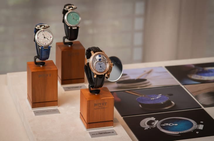 值得一提的是,BOVET并非仅仅专注于男士复杂时计,对于女表同样展现创意与诗意,例如Miss Audrey(2020年GPHG最佳女表奖得主)与Miss Audrey Sweet Art(入围2021年GPHG最佳女表奖)的系列便是最好的例子,前者以Amadéo®可转换系统打造三种佩戴方式,让手表可轻松转化为怀表或座钟;后者则大胆採用糖晶体制作面盘,呈现出前所未有的材质效果,既浪漫又带有现代感,这些设计让女性藏家能在佩戴时感受到专属的诗意与趣味。