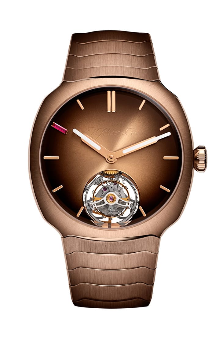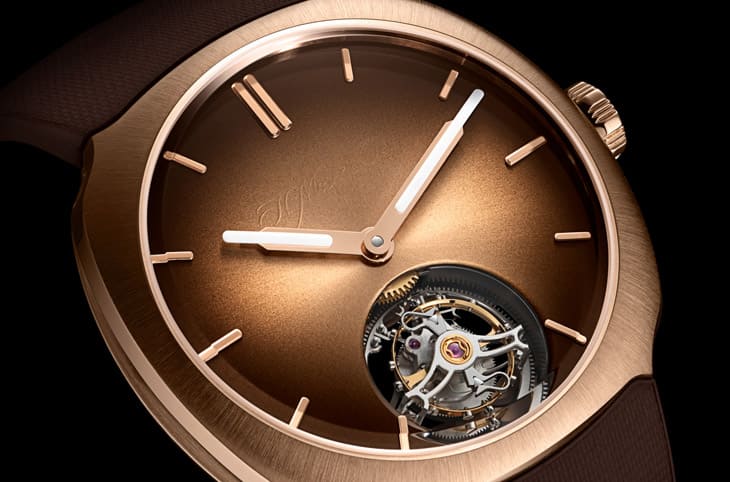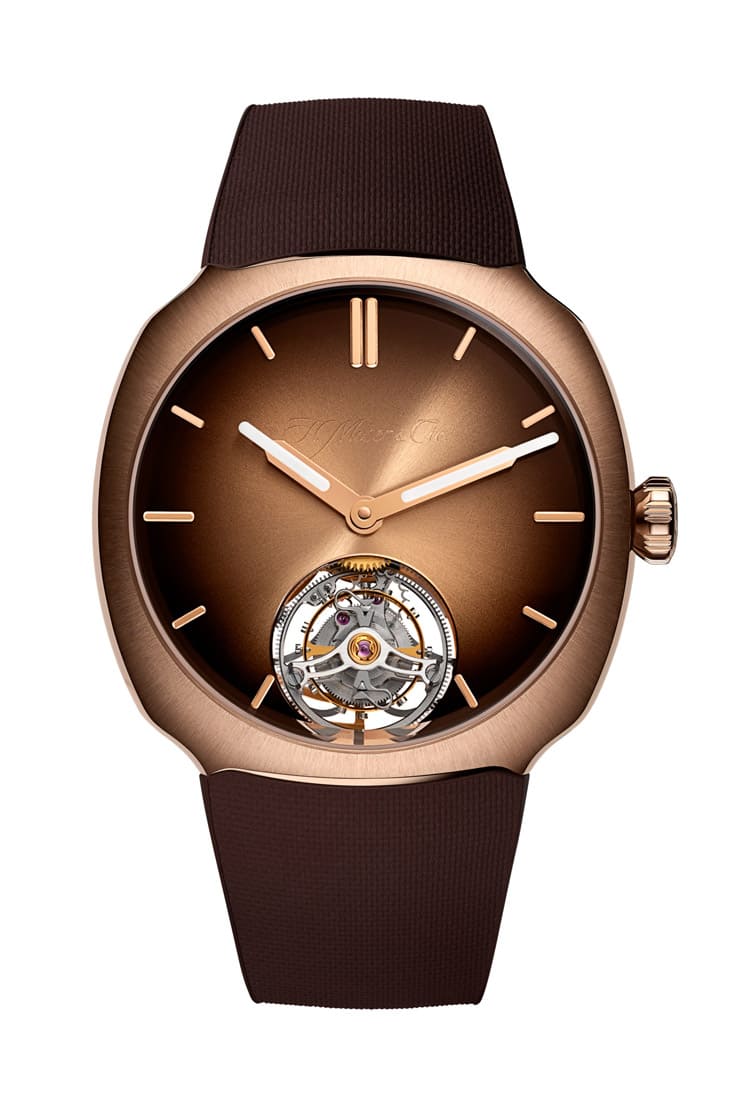 ▲搭载HMC 805自动机芯与一分钟飞行陀飞轮,双Straumann游丝设计提升稳定性与走时精准度。