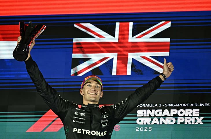 ▲George Russell在新加坡赛以稳定节奏与冷静判断掌控全场,最终夺下本季第二座分站冠军。Source:Instagram @georgerussell63