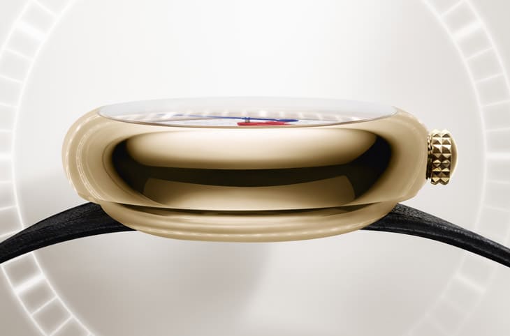 ▲延续鹅卵石般圆润无表耳造型,12点钟表冠设计呼应怀表比例,展现复古与现代的平衡。