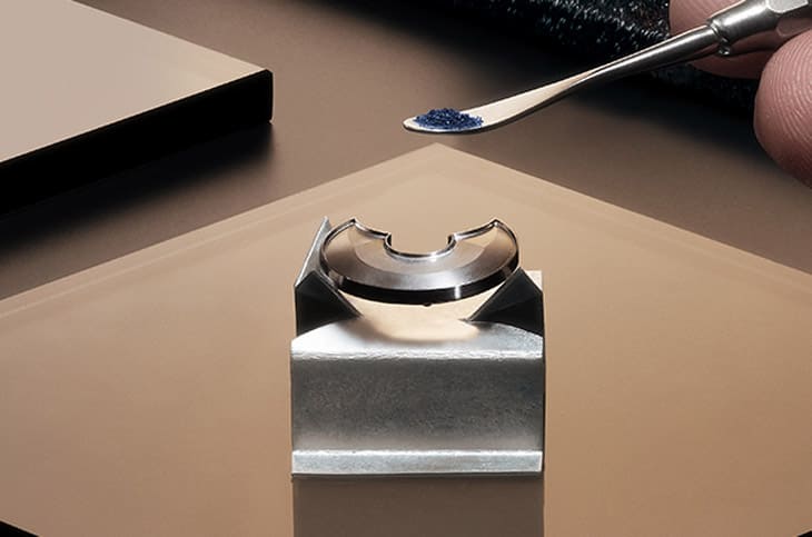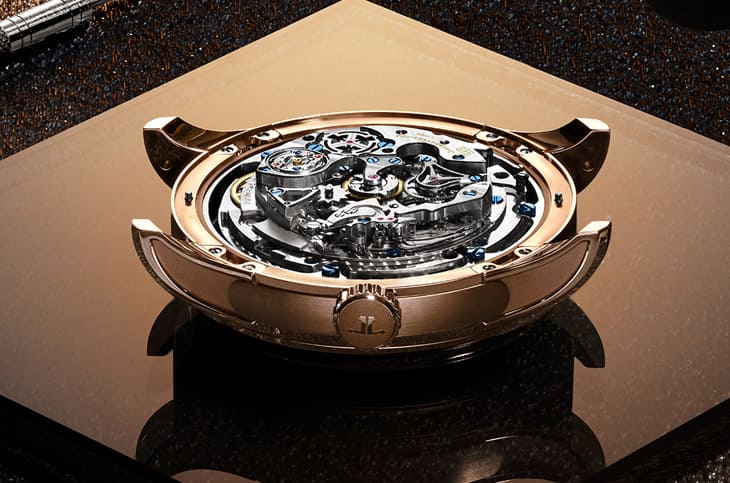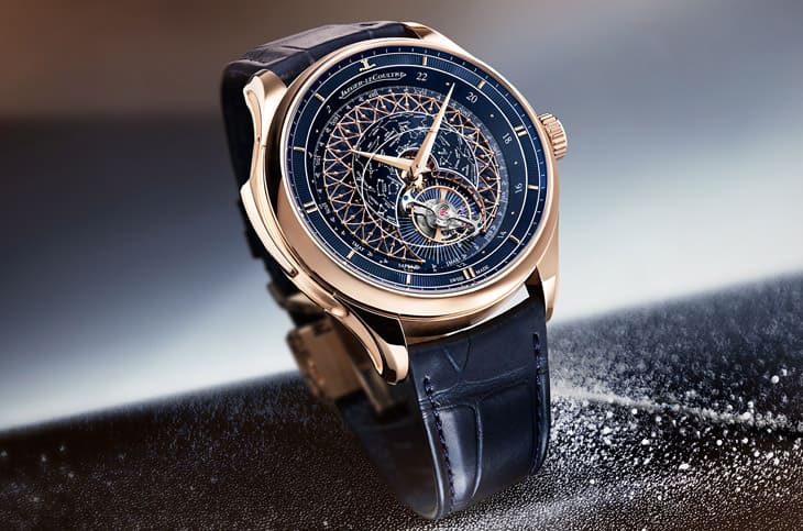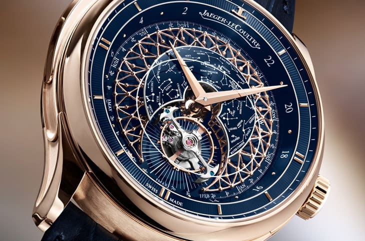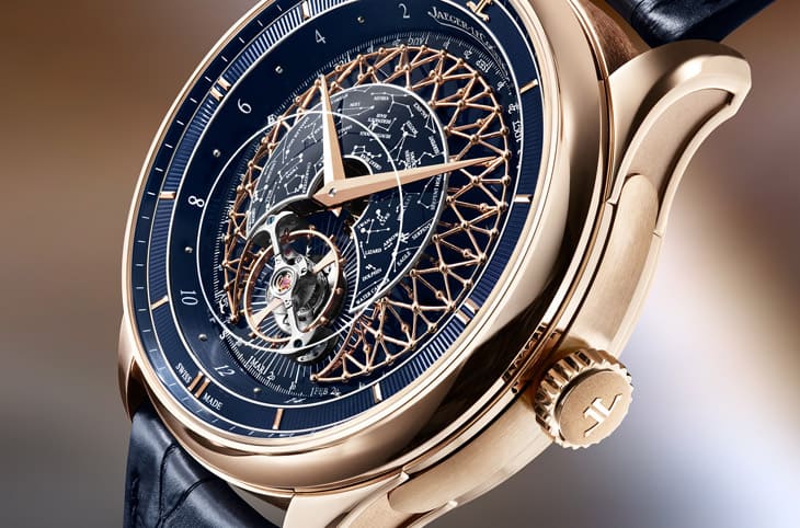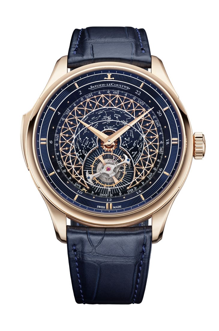 ▲中央穹顶覆深蓝大明火珐琅,搭配白色星座转印图案,积家将星空缩小以突显金色格栅精致细节。