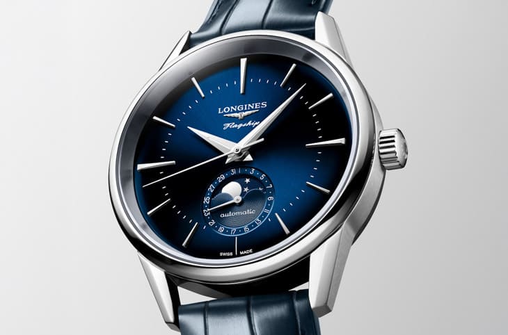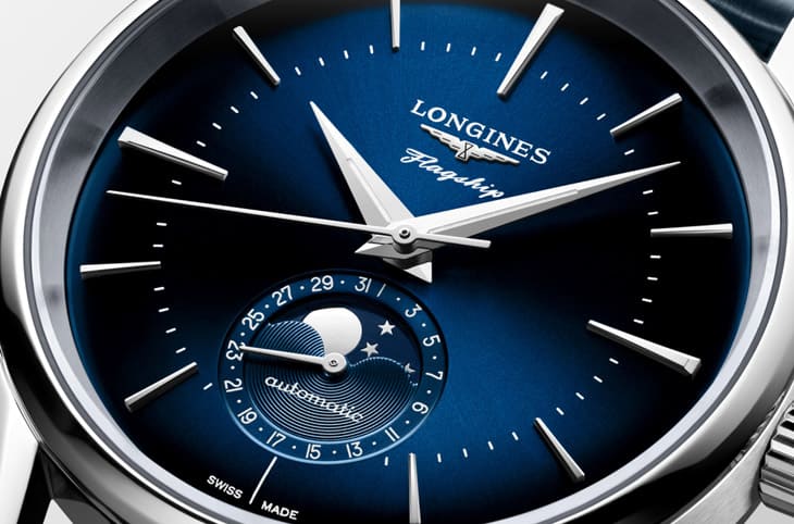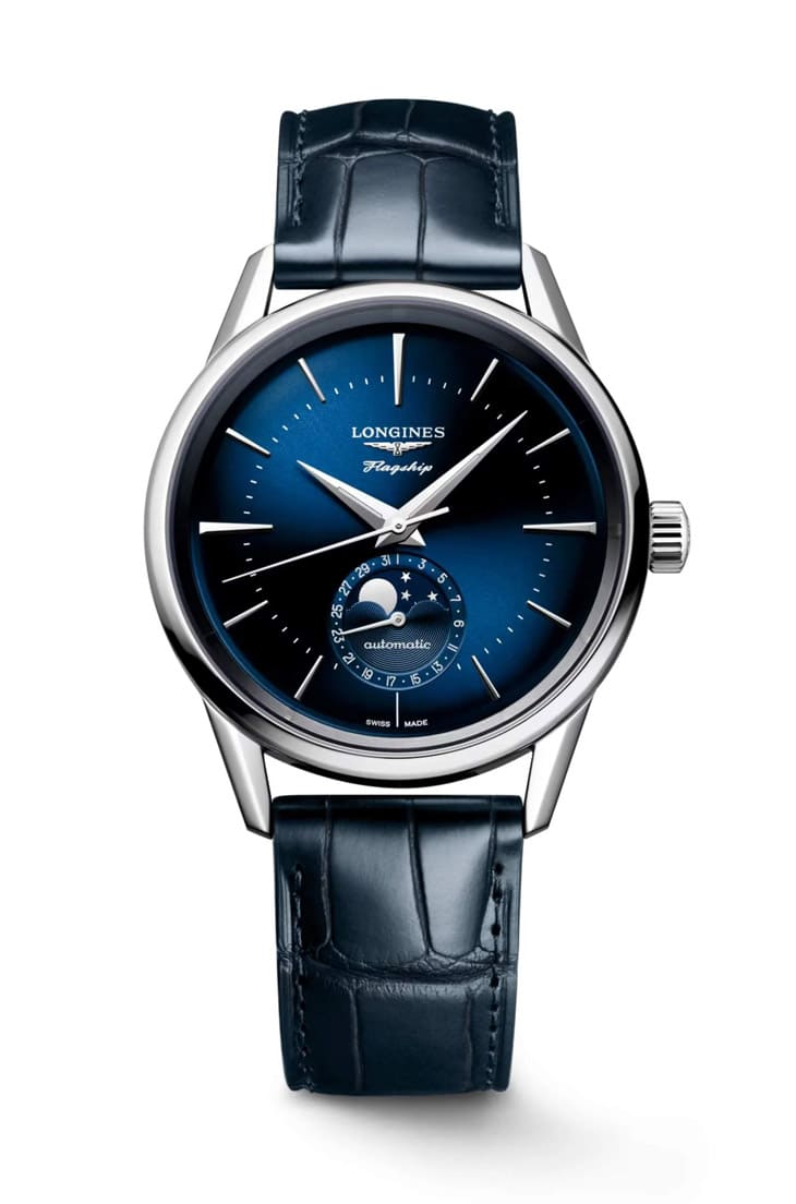 浪琴表对于「复刻」这件事向来拿捏得恰到好处,Flagship Heritage月相表就是一种优雅的时代回望,它的灵感来自1950年代末诞生的第一代Flagship旗舰系列,当时浪琴表以乾净俐落的线条与成熟的机械结构,奠定在正装表领域的典范。而当「老钱风」美学再度成为主流,这款结合古典比例与细腻细节的作品,便顺势成为复古风格中最具代表性的现代诠释。前两年浪琴首度在Flagship Heritage系列中加入月相功能,赋予这款表更多诗意与象徵意涵,虽然月相显示在生活中并非关键功能,但那一弯银月的浪漫与节奏感,正代表着人们对时间的情感依附,它专为那些喜欢传统机械风格、却不想被繁复机构「吓退」的佩戴者而生。