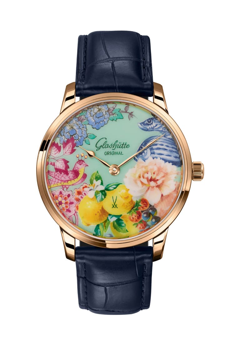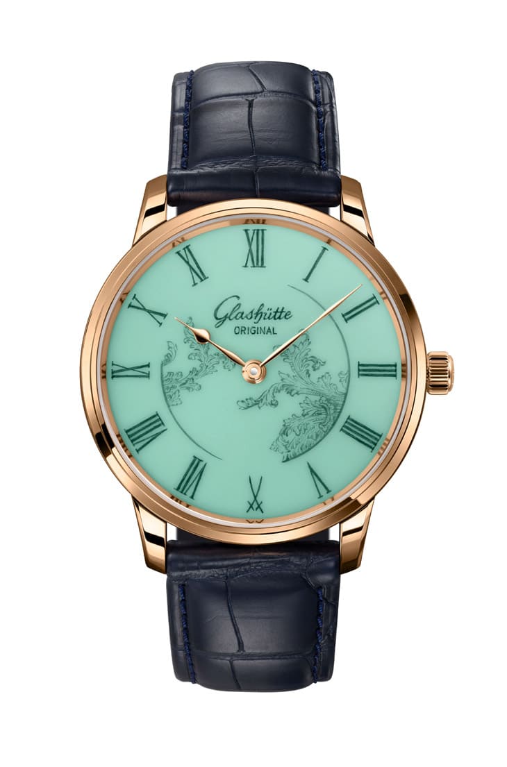 GLASHÜTTE ORIGINAL 2025年迎来创立180周年,选择与拥有315年历史的麦森瓷器(MEISSEN)再续德国工艺的传奇,推出Senator Meissen议员麦森限量系列,于是机械制表的精准理性,与瓷艺绘饰的浪漫诗意,于腕上完美交融。