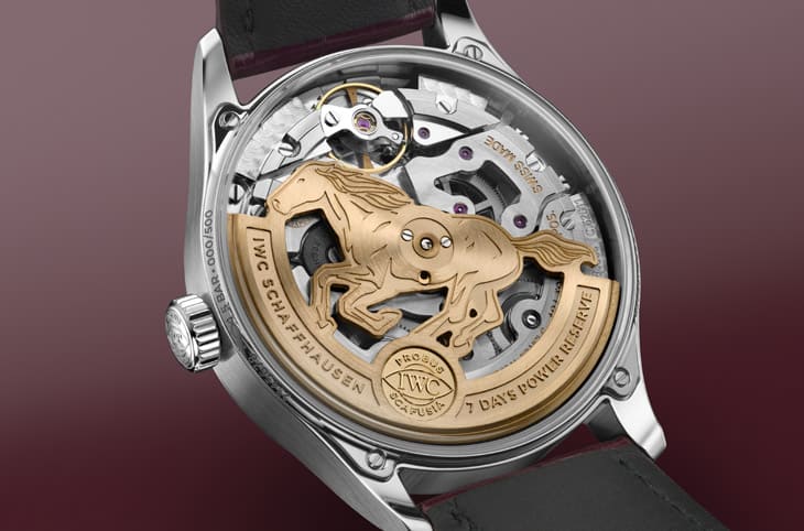 在机芯部分,手表搭载52011自动上链机芯,每小时震动28,800次,内含31颗宝石,其具备IWC着名的比勒顿上链系统,内含几乎不磨损的陶瓷材质零件,透过自动盘双向运动,为双发条盒累积长达七天(168小时)的动力。藉由蓝宝石玻璃底盖,佩戴者可欣赏镀金自动盘,万国表更特别以骏马奔腾造型呈现,细节生动且寓意吉祥,呼应马年的主题精神。
