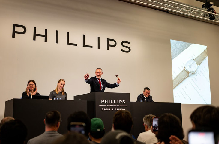 ▲拍卖现场竞标火热,一位华裔藏家率先高喊八百万瑞郎,五位藏家激战十分钟后由电话买家夺标。Source:Hodinkee