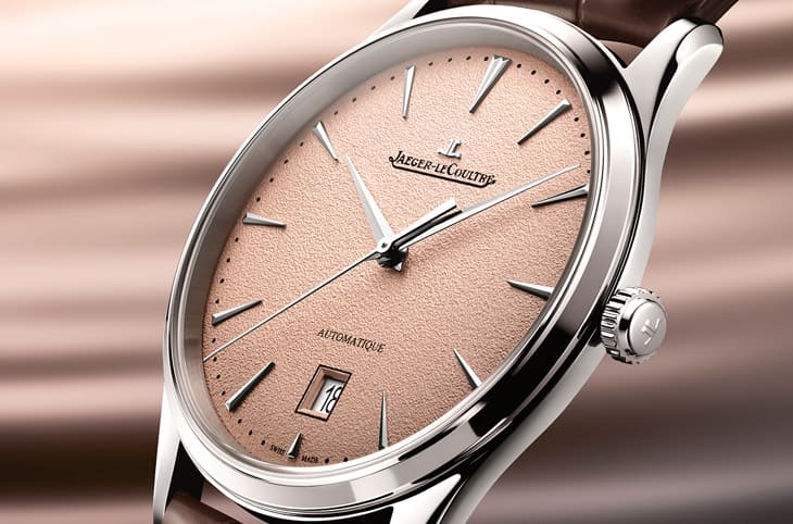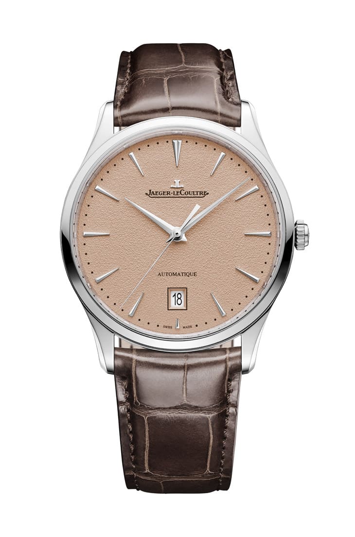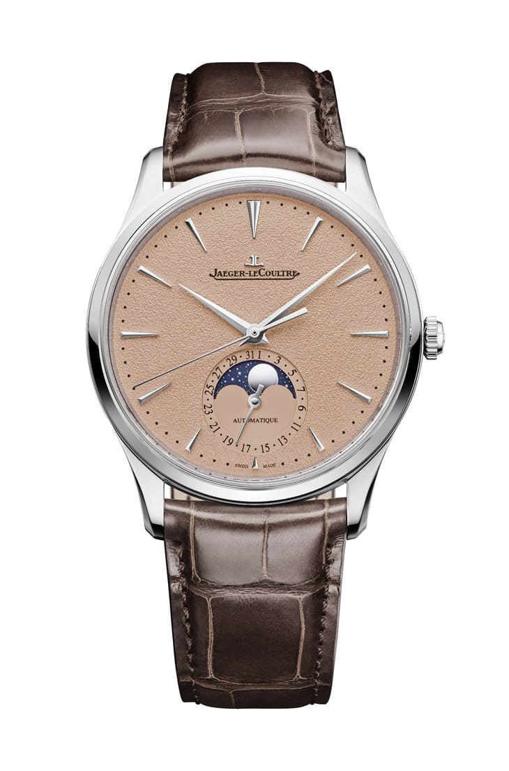 有时候真正耐看的正装表往往比复杂功能更具挑战性,因为它必须在材质、比例、线条与气质上达到高度和谐,JAEGER-LECOULTRE长年在这领域深耕,Master Ultra Thin系列便是最能反映品牌美学的作品。2025年积家以此系列为基础推出两款钢壳新作,包括Master Ultra Thin Date与Master Ultra Thin Moon,并首次以铜色粒纹面盘、或是大家更熟悉的「鮭鱼色」面盘为系列注入新风格,使原本偏冷静的造型添了几分柔和与精致的暖意。