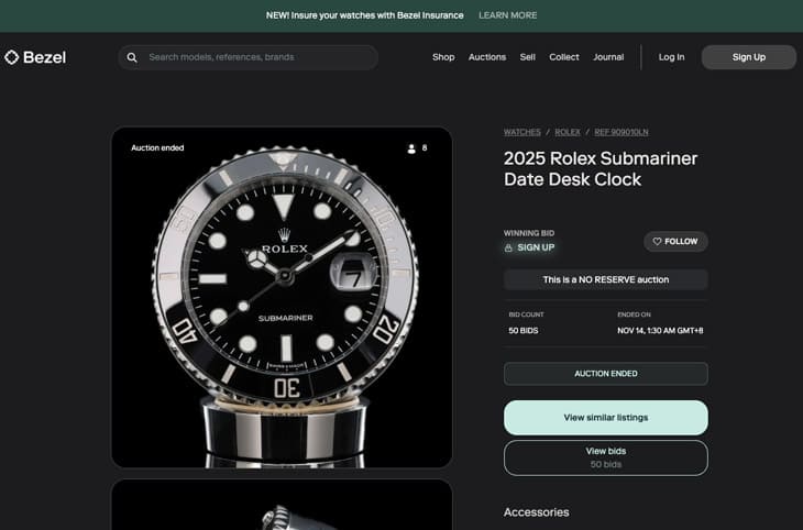 虽然这款座钟已在几个月前悄悄上市,但直到今年十月下旬,媒体才开始有比较广泛报导,让更多人注意到它的存在。随即这款产品也迅速迎来拍卖首秀。日前在美国知名二手表平台Bezel的线上拍卖中,经过为期一周、50次出价的激烈竞标,座钟最终以17,750美金代价落槌,折合台币约553,000元。这意味着得标者比原价多支付了7,480美金的溢价,几乎是座钟国外定价的7成,用这个数字换算台币,大约要多花23万元,几乎可以再入手一只劳力士基本款手表,可见它现在炙手可热的程度。
