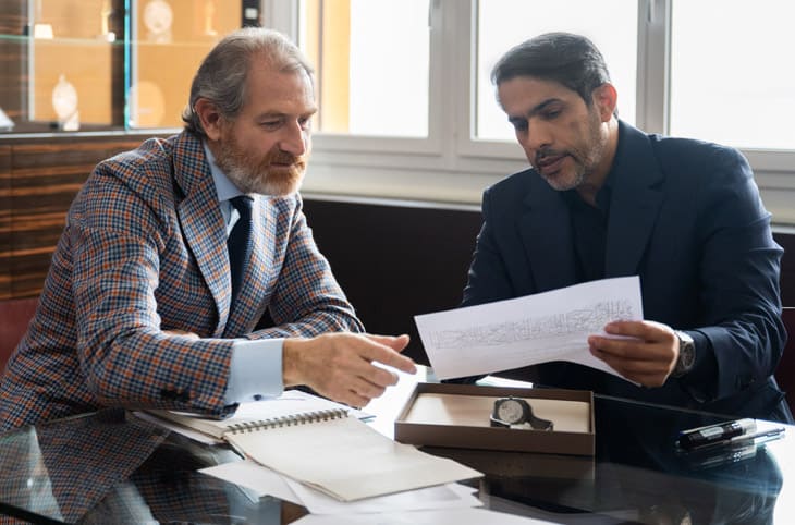 ▲宝格丽钟表产品设计总监(左)强调引用殿下语句需特别授权,也肯定艺术家挥洒自如的才华在创作过程中的帮助。