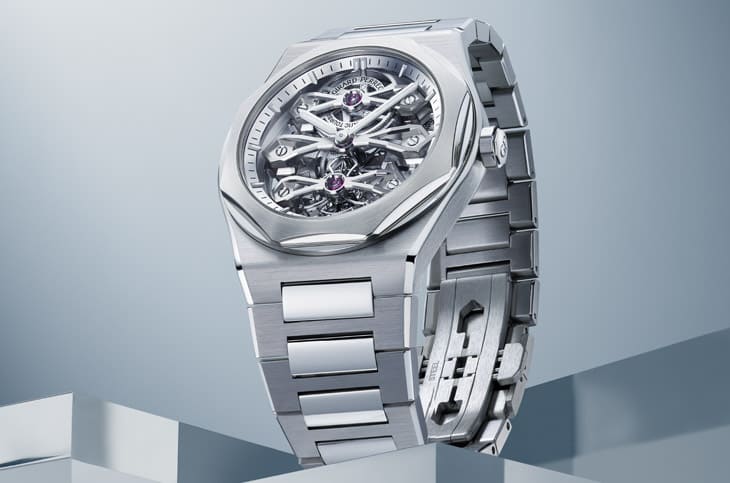 GP芝柏表2025年为Laureato桂冠系列五十周年推出的第二篇章,可说是把品牌最具辨识度的两大符码重新编排。Laureato自1975年诞生,向来在运动钢壳与优雅比例之间抓得极为精准;三金桥结构则可追溯至1867年的陀飞轮怀表时代,是制表史上少见被视为「设计」本身的机芯架构。如今,两者正式合体成一只当代风格鲜明的三金桥陀飞轮,既是致敬,也是一次漂亮的再叙事。