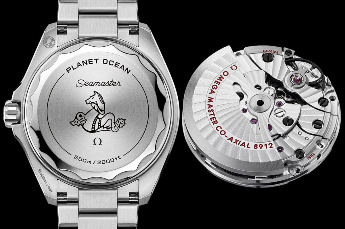 第4代PO搭载的是欧米茄8912大师天文台机芯,这枚机芯本来是Ploprof、Ultra Deep等顶级潜水表在使用,现在正式成为Planet Ocean的心臟,它具备双发条盒、60小时动力、硅游丝、同轴擒纵,以及15,000高斯抗磁能力,精准度达到METAS要求的0~+5秒,对于一款专业潜水表来说是绝对顶规。要注意的是,8912是一枚「无日期」机芯,因此面盘不再设置日期窗,Planet Ocean因此第一次呈现完全的「轴对称盘面」,视觉纯度有感提升,这在工具表领域有点逆风而行,现今的表功能愈多愈好是常态,而欧米茄选择反向操作,把纯粹感放在第一位。虽然取消透明底盖让人没办法看到阿拉伯式日内瓦波纹等精致打磨,但换来更佳比例与耐用性,对Planet Ocean这样的专业潜水表来说,是更符合定位的选择,而且8912机芯拥有时针快调功能,跨国旅行时只调时针、不影响分秒,实用度让人满意。