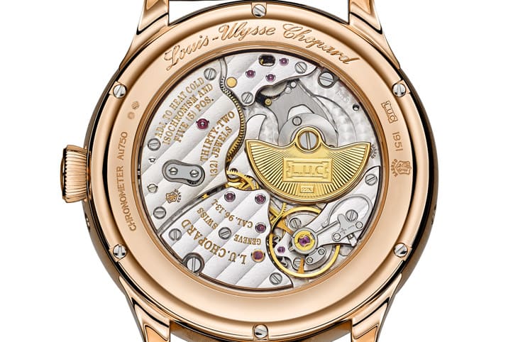 18K玫瑰金材质/L.U.C 96.13-L自动上链机芯/时、分、小秒、大日期、星期、月份、闰年显示/万年历功能/月相显示/24小时显示/蓝宝石水晶镜面、透明底盖/防水50米/表径40.5mm/参考价:NT$ 3,190,000