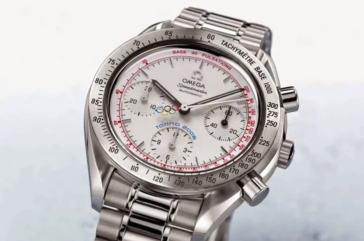 ▲2006年都灵冬奥Speedmaster Reduced的纯白面盘保留超霸经典计时功能,更外加红色脉搏计刻度,兼具测速与测量心率作用。