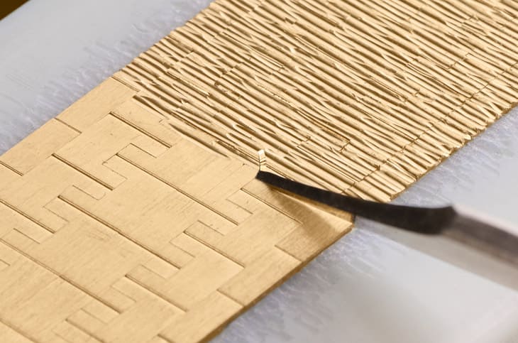▲链带饰以宫廷式雕刻树皮纹理,不规则手工横向刻纹细致延展,使金质表面闪耀优雅灵动光泽。