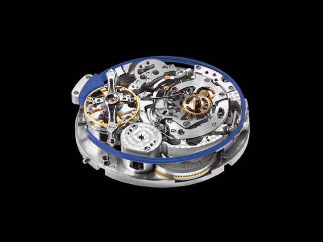 另外爱彼在手表精准度上,也构思了多项精致零件,Millenary Minute Repeater採用头尾相连的双平面游丝结构,不同于一般所使用的单摆轮游丝,双游丝可以解决手表在垂直位置时的精准度问题,透过双游丝架构可以自行补偿、 调校正确时间。