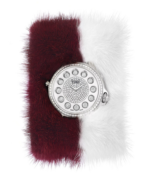 「FENDI是皮草的代表名词–皮草就象徵着 FENDI」,拥有时尚设计大帝美誉的Karl Lagerfeld曾经这样说过。皮草是奢华的精随所在,讚颂着永恆传统,展现热情和出眾的义大利精致工艺。FENDI让皮草提升至更高层次,重新塑造出崭新风格,且更为着重在品质上,再下一个秋冬系列表款中,FENDI为其代表作品Crazy Carats腕表穿戴皮草表带,双色的貂皮为这款优雅精致的表款,展现出更为独创时髦且突出耀眼的外观。