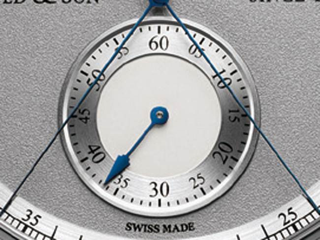 表款以实心和空心的菱形箭头区别计时和走时显示,啟动计时功能时,二根大型中央秒针一为跳时、一为扫针,二种不同的运行节奏创造有趣的视觉。