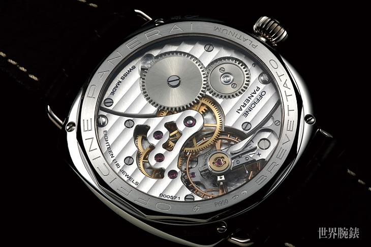 仔细端详表体的每一细节,足以让沛迷们细细品尝的復刻元素尽出,不管是表圈独一无二的12边形设计,还是表径所採用的Plexiglas®树脂玻璃,追求原汁原味復刻的沛纳海的确在细节裡藏了魔鬼,而正规的航海时计47mm与彷彿原作不锈钢材质的铂金质感,更是在简约面盘的视感撞击之下予人经典味道;翻至底盖处,更可见表壳上刻有"OFFICINE PANERAI-BREVETTATO"的字样,Brevettato之意为「取得专利」,便是指Radiomir为沛纳海的专利夜光物质,和原版试做品有异曲同工之妙,因为这些试做品主要提供军方高层测试使用,在在呼应了表款源自叁○年代的深厚歷史渊源。