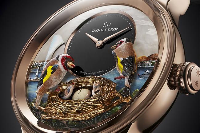Minute Repeater ﹣叁问表 以打簧的形式发出报时、刻、分鐘的声音,以叁锤叁簧的叁问表而言,报「时」的声音较沉,刻的声音是ding-dong双声,分鐘的声音为ding。有名的叁问表如Jaquet Droz的 bird repeater。