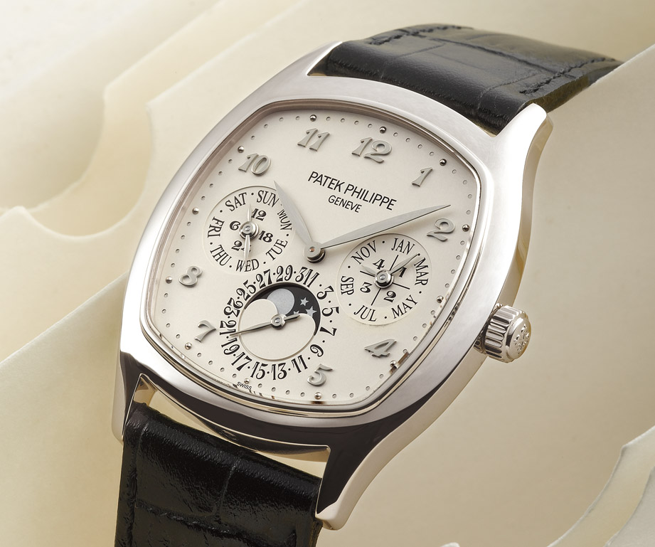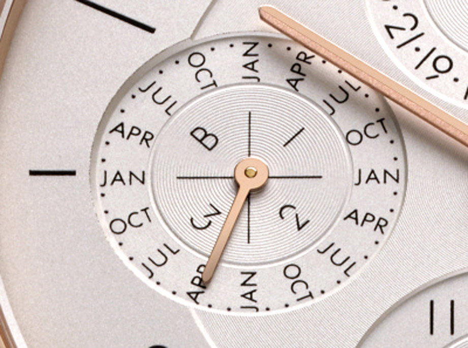 腕表的复杂功能有三大类被视为顶级工艺的表现,包括报时、陀飞轮与万年历,其中万年历的入手门槛是三大功能中相对较亲切的,因此受欢迎度当然也高。万年历腕表理论上如果中途不经历洗油、保养的过程,那麼其每逢一百年才需调校一次,除了本身机芯结构的精密复杂,万年历腕表能提供佩戴者的优势便是详尽的时间讯息以及省却频繁调校的高度便利性。能被归类为万年历腕表通常需要同时具备有日期、月份与闰年(能被4 整除的年份)显示这三种主要元素,现今表厂则喜欢多附加如星期和月相显示,让腕表的面盘看起来更充实而富有气势。